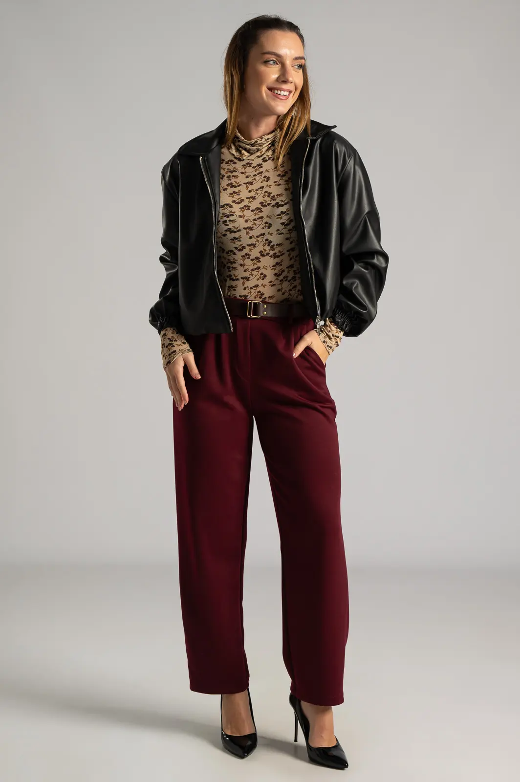 Jacket από εξαιρετικής ποιότητας δερματίνη. Κλείνει χιαστή με φερμουάρ. Έχει γιακά. Διαθέτει μακριά μανίκια που καταλήγουν σε λάστιχο. Στο τελείωμα έχει λάστιχο. Στα πλαινά έχει τσέπες. Η μέτρηση έχει γίνει με κλειστό φερμουάρ. Εσωτερικά είναι φοδραρισμένο. Οι μετρήσεις του πίνακα είναι αντιπροσωπευτικές για κάθε κωδικό. 100% polyester.