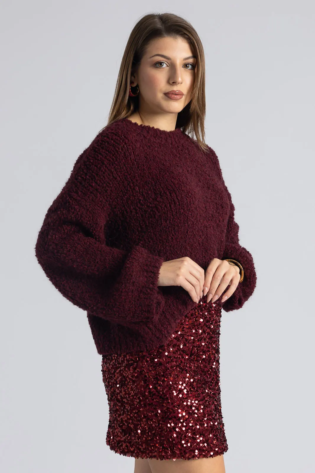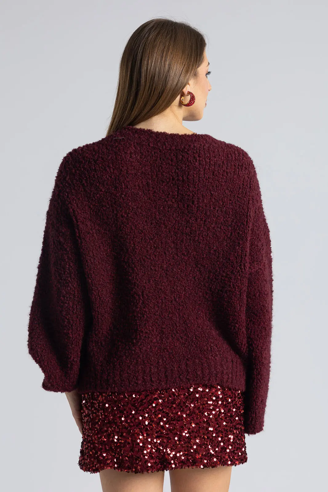 Μπλούζα teddy με στρογγυλή λαιμόκοψη. Διαθέτει μακριά μανίκια. Στο τελείωμα της, στη λαιμόκοψη και στα μανίκια είναι σε rib ύφανση. Οι μετρήσεις του πίνακα είναι αντιπροσωπευτικές για κάθε προϊόν. 62% acrylic, 18% polyester, 8% wool, 8% viscose, 4% alpaka.