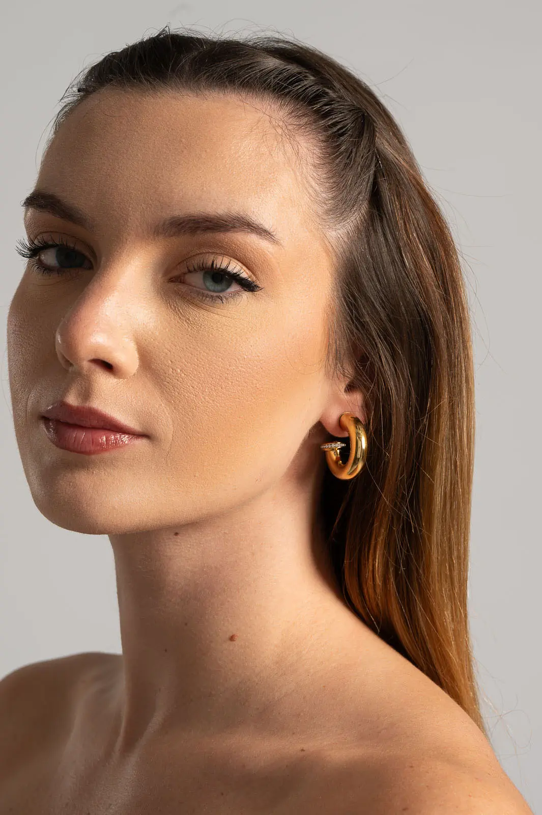Σκουλαρίκια από εξαιρετικής ποιότητας ατσάλι. Έχουν κυκλικό σχήμα. Είναι διακοσμημένα στο τελείωμα με ζιργκόν. Είναι κουμπωτά στα αυτιά. Μπορεί να φορεθεί και από τις δύο πλευρές. Εύκολα συνδυάζονται ακόμα και στις καθημερινές σου εξόδους.